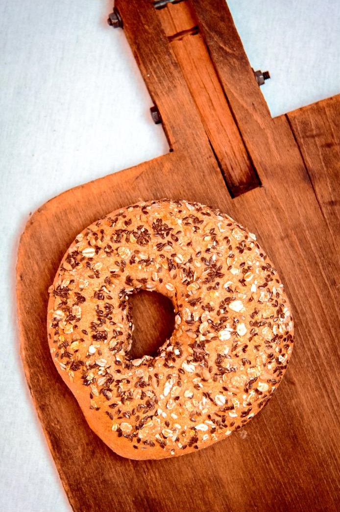 κουλούρα με αλεύρι Ζέας σύμφωνα με τη συνταγή του Αράθυμου Ειρηναίου, από τον φούρνο 2Ε στην Τήνο. Ένα διαφορετικό ψωμί, που μόλις ετοιμαστεί το κόβουμε οριζόντια και το γεμίζουμε με ότι τραβάει η όρεξή μας.