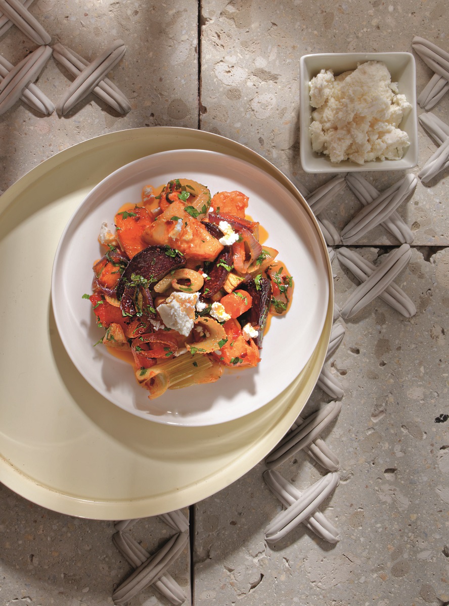 Οι φθινοπωρινές ρίζες, όπως καρότα, πατάτες, γλυκοπατάτες, παντζάρια και σελινόριζα, «σμίγουν» με το ξινοτύρι και δημιουργούν ένα πιάτο γεμάτο αρώματα και γεύση.