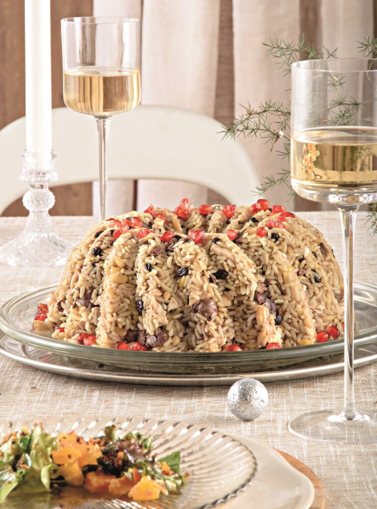 3. Χριστουγεννιάτικο πιλάφι Τι πιο ωραίο από το να προσθέσουμε στο εορταστικό μενού μας ένα εντυπωσιακό χριστουγεννιάτικο πιλάφι. Η Ελένη Σαράντη μάς δίνει τη συνταγή. Διαβάστε αναλυτικά τη συνταγή εδώ.