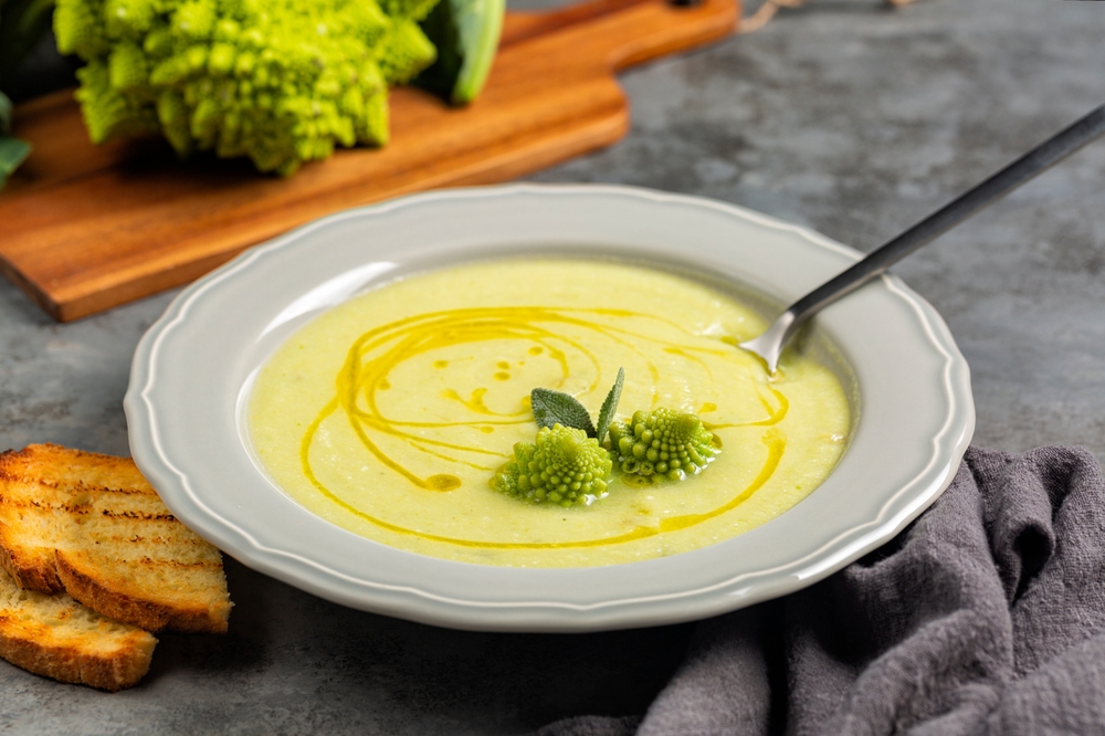 Το ρομανέσκο με την φρακταλική δομή έχει σφιχτή σάρκα και πιο τραγανή υφή από το μπρόκολο, ενώ η γεύση είναι ξηροκαρπάτη και θυμίζει αυτή του καρυδιού. Μοιάζει περισσότερο με το κουνουπίδι αλλά έχει ελαφρώς πικάντικες και πικρές νότες όπως του μπρόκολου.3 τρόποι για να το μαγειρέψετε