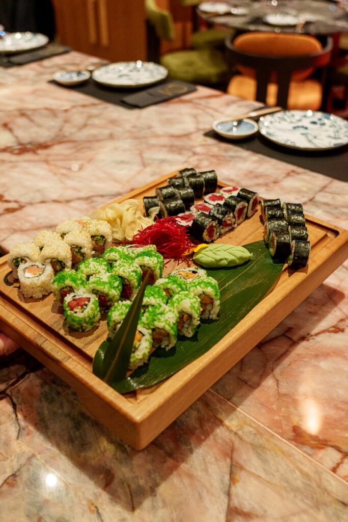 Ξεκινήσαμε από το Sea Bass Ceviche με leche de tigre, σταφύλι, αγγούρι και calamansi, ένα πιάτο που λειτουργεί σαν ιδανική εισαγωγή: δροσερό, φωτεινό, με οξύτητα που ξυπνά τον ουρανίσκο. Αμέσως μετά, το Scorched Hamachi με pico de gallo, spicy lime και βασιλικό έδειξε πώς η καψαλισμένη επιφάνεια μπορεί να δώσει βάθος χωρίς να καλύπτει το ψάρι. Ιδιαίτερη εντύπωση μας έκανε το Aegean Tuna Sashimi, με tuna ponzu, jalapeños salsa και crispy onion: μια καθαρά ιαπωνική βάση που «σπάει» με μεσογειακή ένταση. Από τα πιο πληθωρικά πιάτα της βραδιάς, το King Crab Tartare με lime kosho, αβοκάντο και λευκή τρούφα, όπου η πολυτέλεια παραμένει ελεγχόμενη και όχι κραυγαλέα. To Black Rice Donburi με τόνο, σολομό, τσιπούρα και ikura λειτούργησε ως comfort πιάτο υψηλής ακρίβειας, ενώ από τα rolls ξεχωρίσαμε το Tartufo Hamachi, που παντρεύει την καθαρότητα του yellowtail με την αρωματική ένταση της τρούφας, και το Black Pearl Salmon, όπου το μαύρο ρύζι δίνει χαρακτήρα χωρίς να βαραίνει.