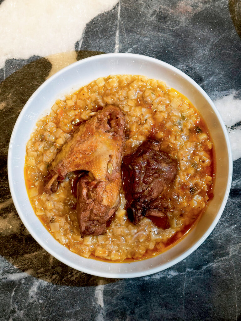 Χυλοπίτες με κόκορα κοκκινιστό, όπως το σερβίρει στο Pharaoh ο σεφ Μανώλης Παπουτσάκης.