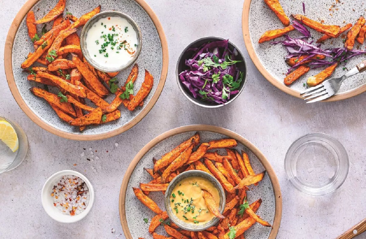 Ψητές γλυκοπατάτες στον φούρνο, σαν τηγανητές Σε αυτή την συνταγή οι γλυκοπατάτες παίρνουν ιδιαίτερη γεύση με τη βοήθεια της πάπρικας και του θυμαριού και γίνονται η υγιεινή επιλογή για τηγανητές πατάτες. Δείτε αναλυτικά τη συνταγή εδώ.